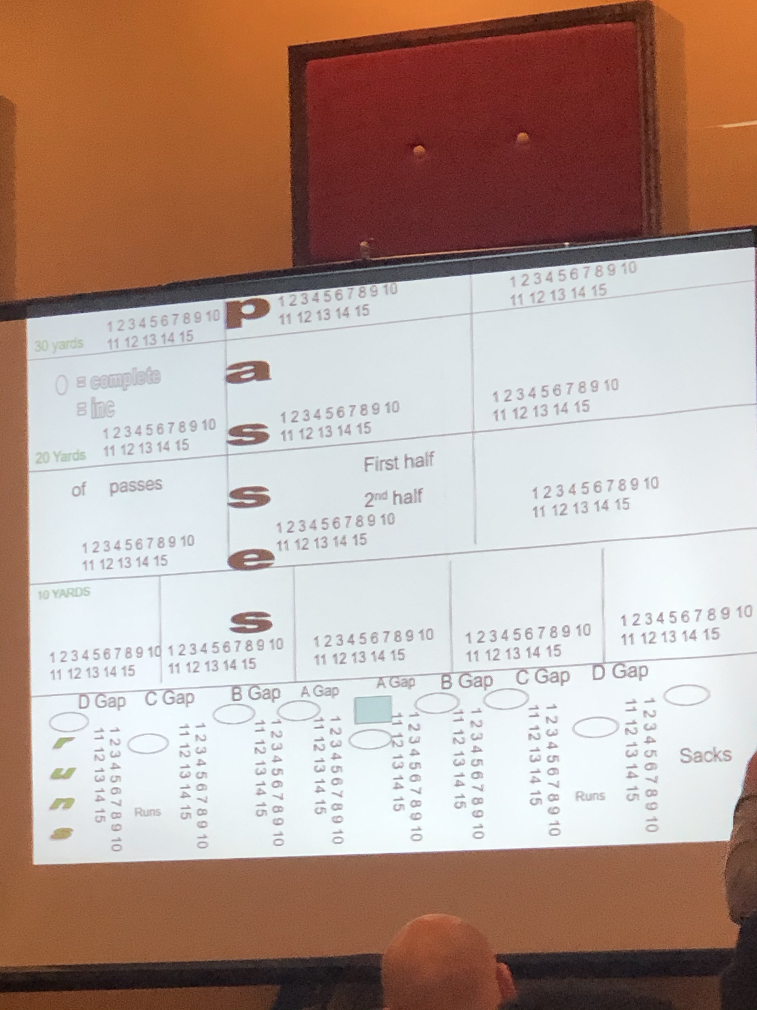 For those of you who want to know what a football scouting hit chart looks like. This is it. This will help you breakdown your opponent. It’s old school and it works.