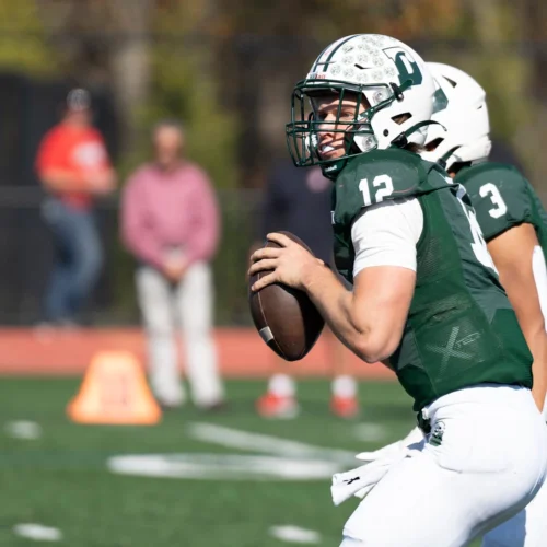 Jadon Prinzivalli, a 2025 QB at the Delbarton School in Morristown, New Jersey is making the most of his first year as a full time starter. Prinzivalli is a big time 3 Star Prospect, dominating his competition. The current senior quarterback is putting on display his arm talent and strength, game after game firing passes to his targets in tight windows. At 6.0” 180 lbs, he utilizes his solid frame to add velocity on his throws, allowing him to fit footballs into tough windows.