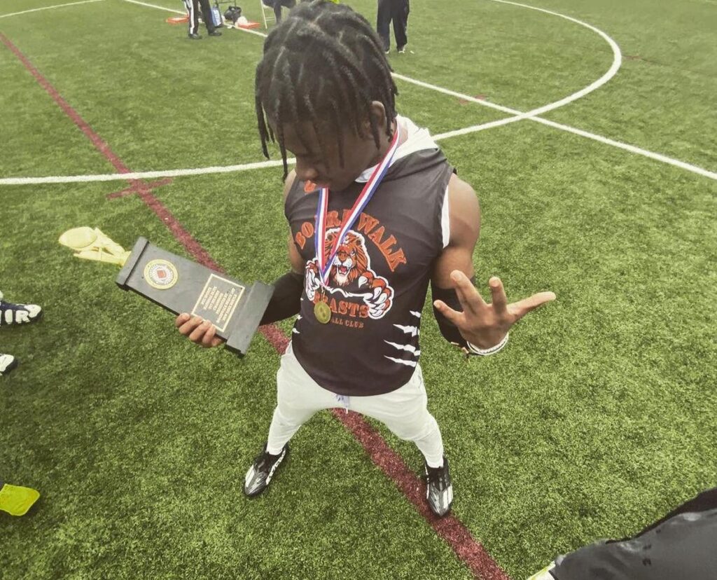 Credle, a 2025 prospect, is no stranger to participating in NUC events and is a part of the Boardwalk Beasts 7v7 club. He is having a fantastic season dominating all phases of the game, offense, defensive , and special teams. Tony is one of the fastest players in NJ, running 40 yard dash times clocking in with a 4.78. His 4.32 shuttle ranked among the tops and has had a broad jump of 8.2” in events.